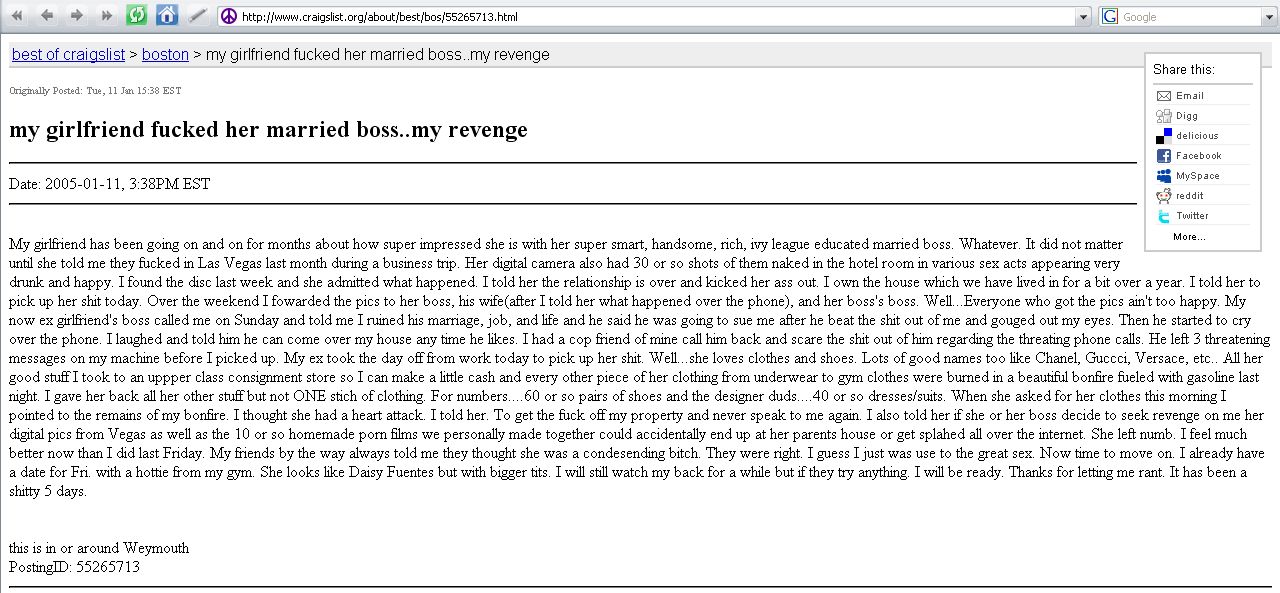 Cruel way to get revenge, for example, on your cheating girlfriend.